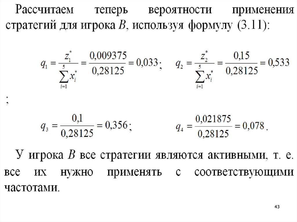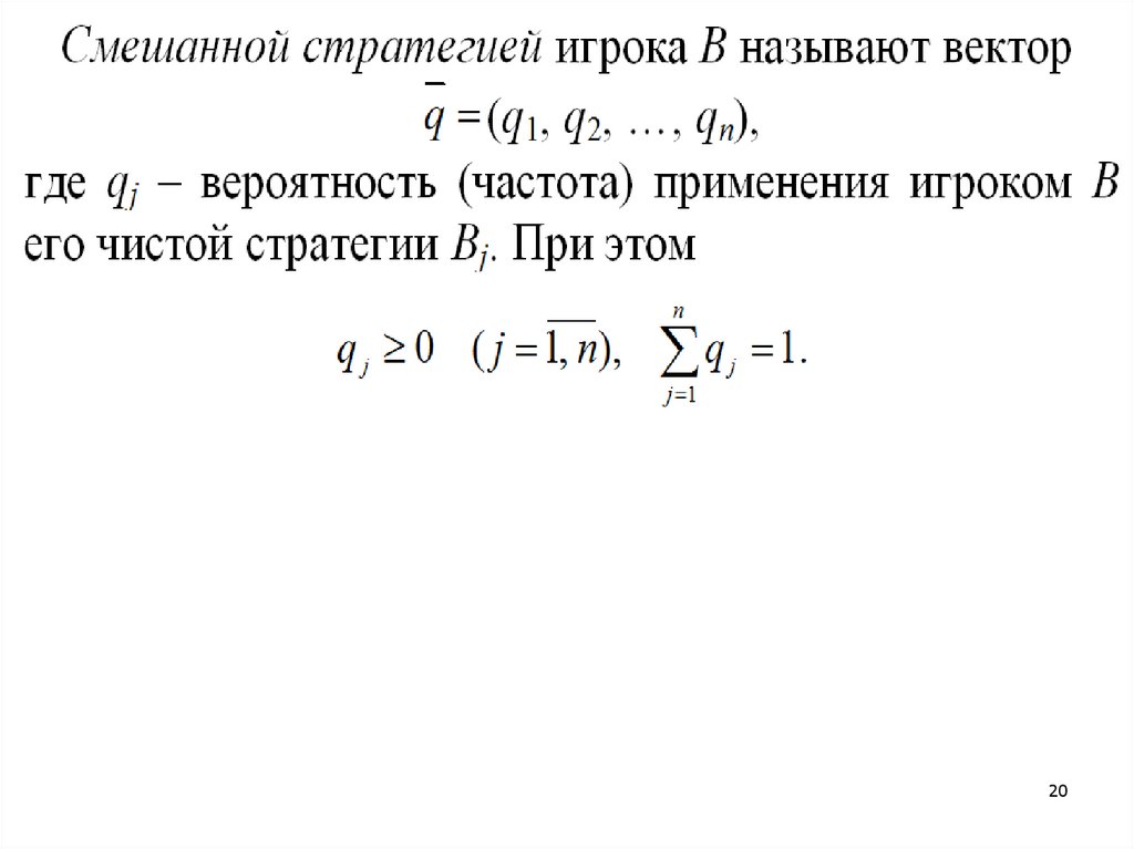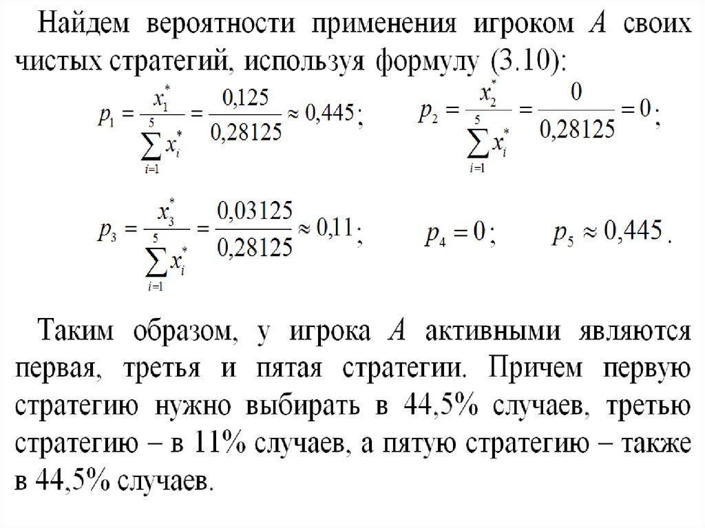 pi – вероятности, с которыми игрок Авыбирает одну из своих стратегий;