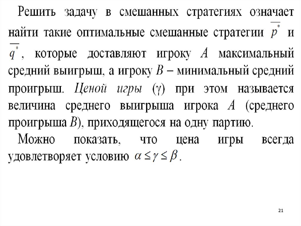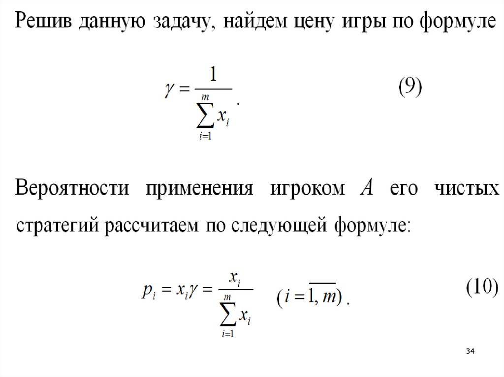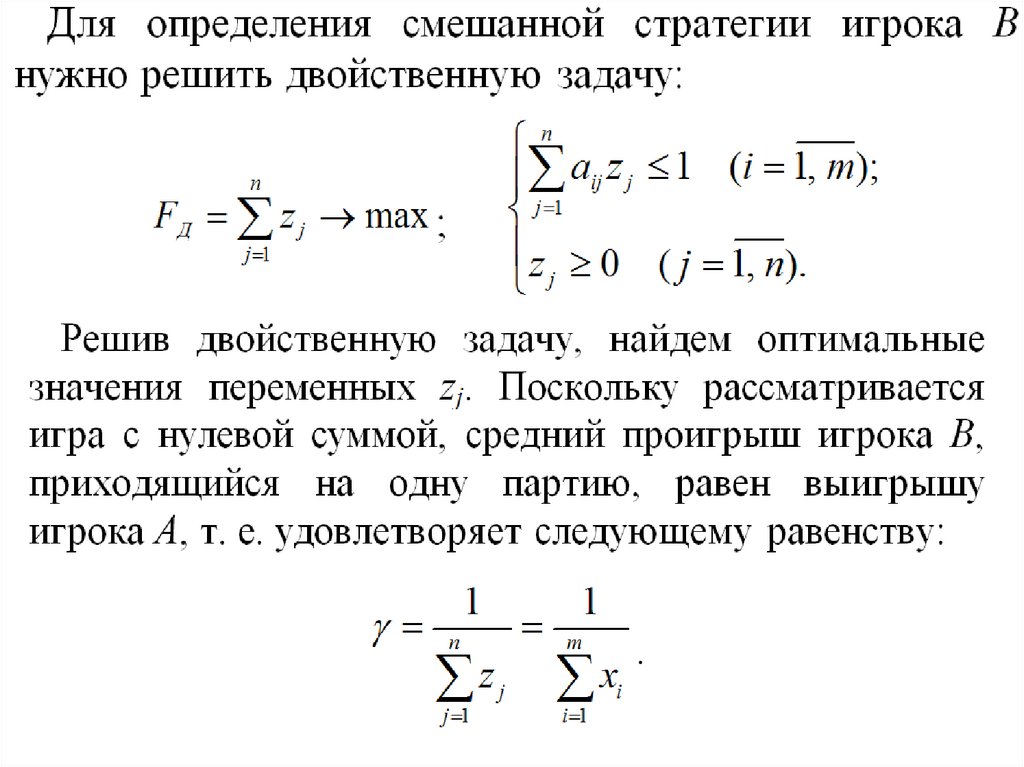 своих стратегий; γ – средняя цена игры.