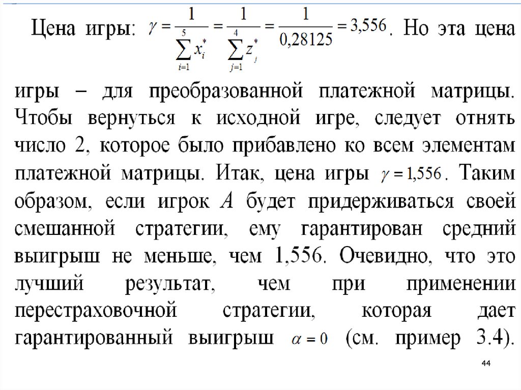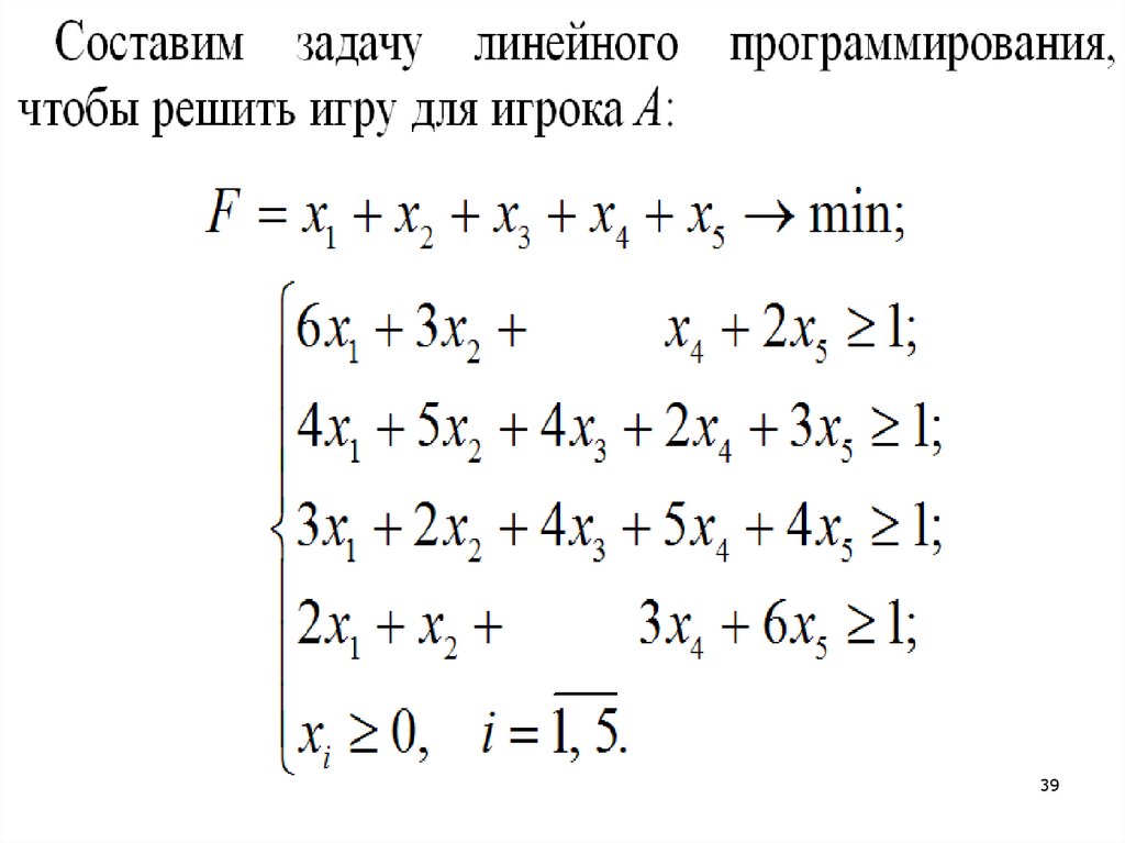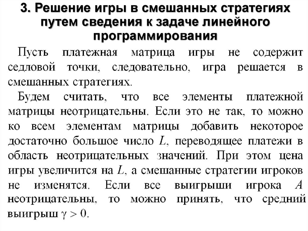 3. Решение игры в смешанных стратегияхпутем сведения к задаче линейного