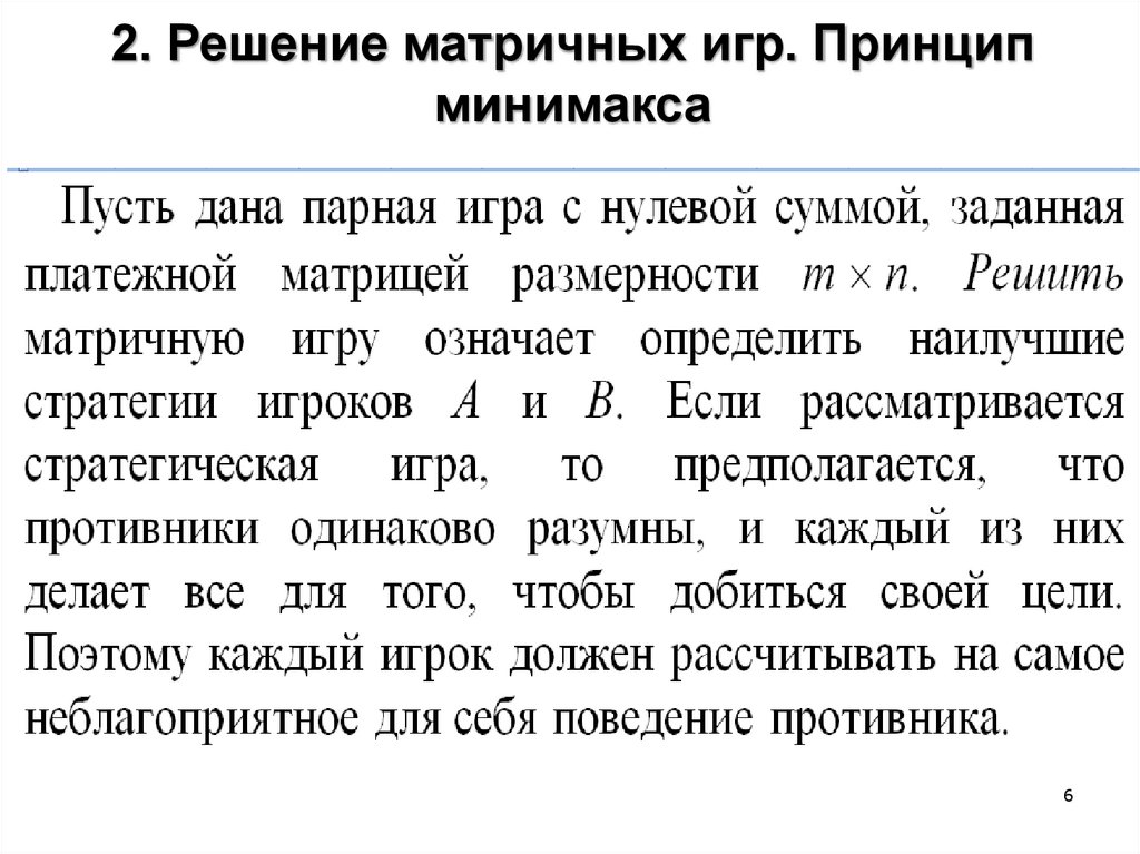 2. Решение матричных игр. Принципминимакса