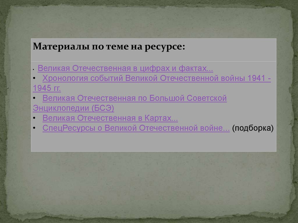 • СпецРесурсы о Великой Отечественной войне... (подборка)