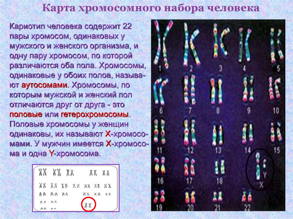 Карта хромосомного набора человекаКариотип человека содержит 22
