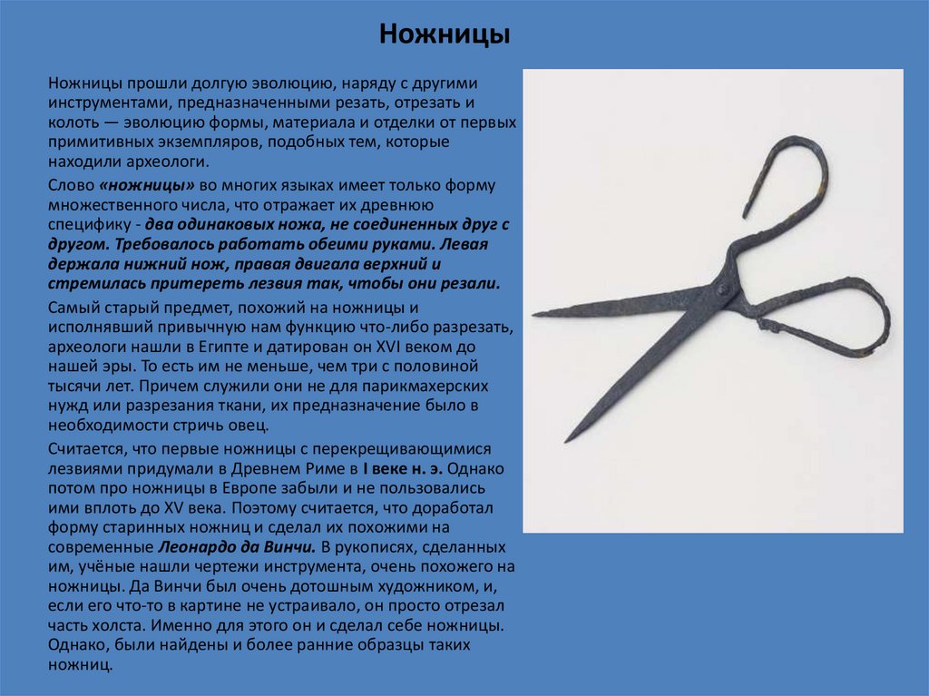 НожницыНожницы прошли долгую эволюцию, наряду с другими