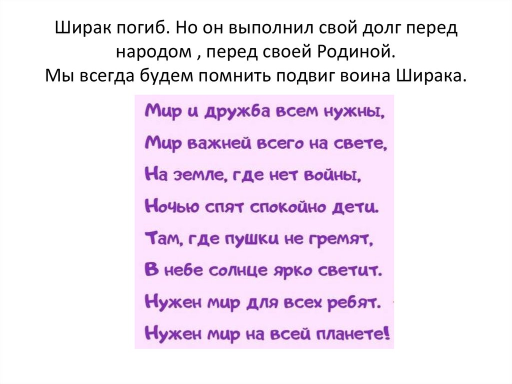 Ширак погиб. Но он выполнил свой долг переднародом , перед своей Родиной.
