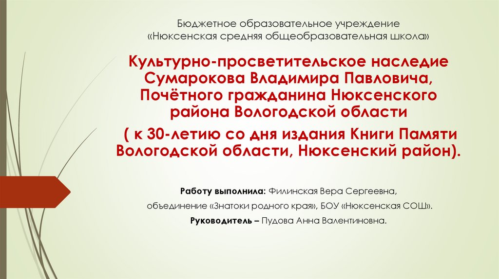 ультурно-просветительское наследие Сумарокова Владимира Павловича