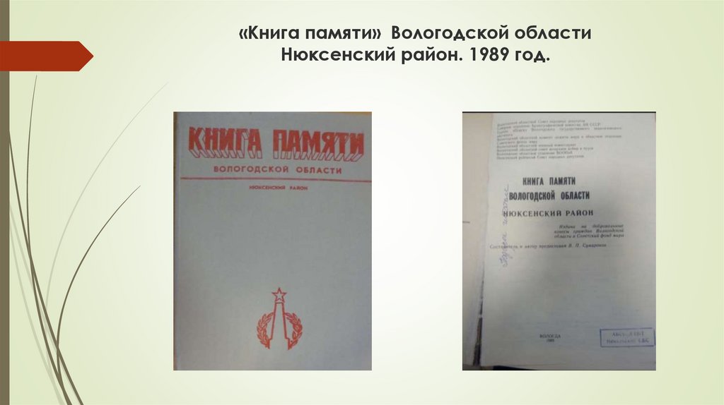 «Книга памяти» Вологодской областиНюксенский район. 1989 год.