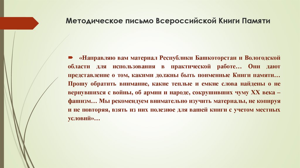 Методическое письмо Всероссийской Книги Памяти«Направляю вам материал Республики Башкоторстан и Вологодской