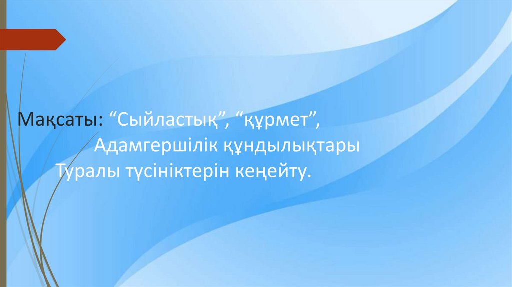 Мақсаты: “Сыйластық”, “құрмет”,Адамгершілік құндылықтары