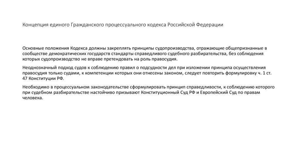 Концепция единого Гражданского процессуального кодекса Российской ФедерацииОсновные положения Кодекса должны закреплять принципы судопроизводства, отражающие общепризнанные в