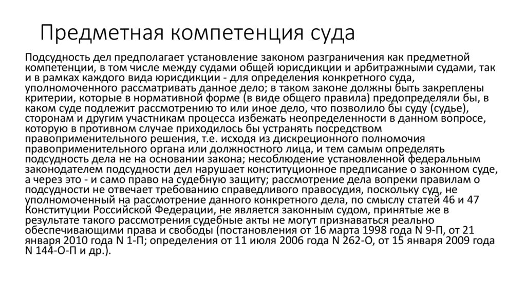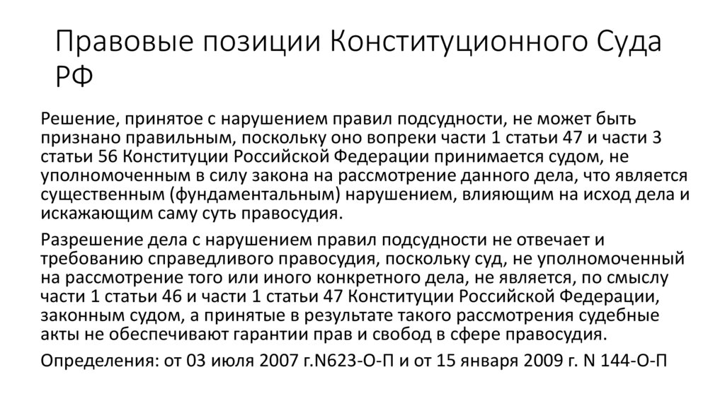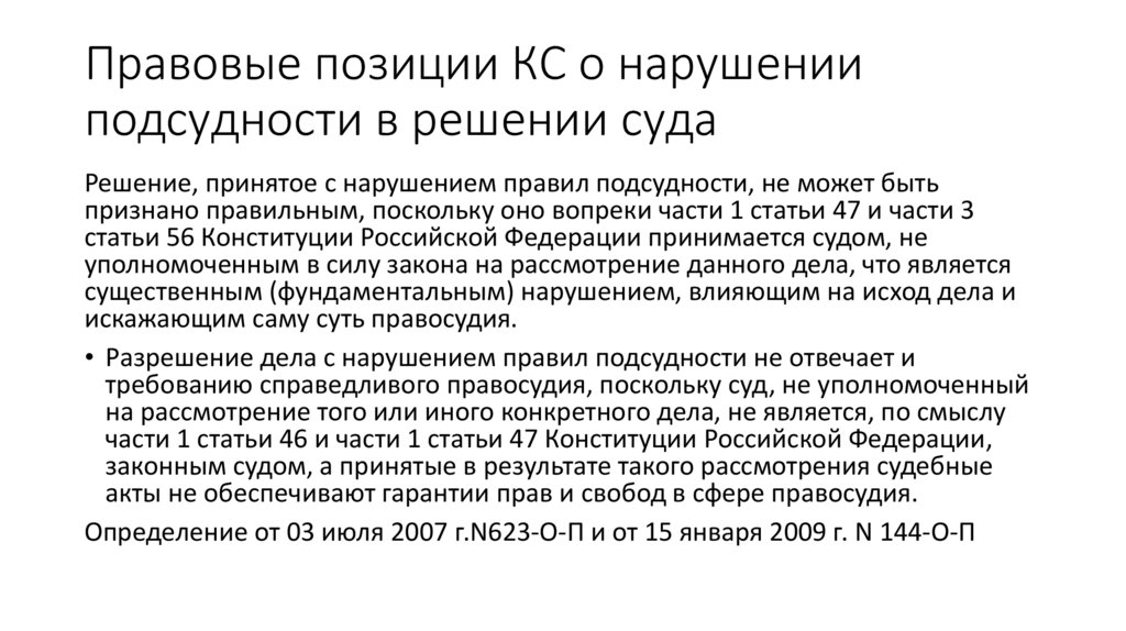 Правовые позиции КС о нарушенииподсудности в решении суда