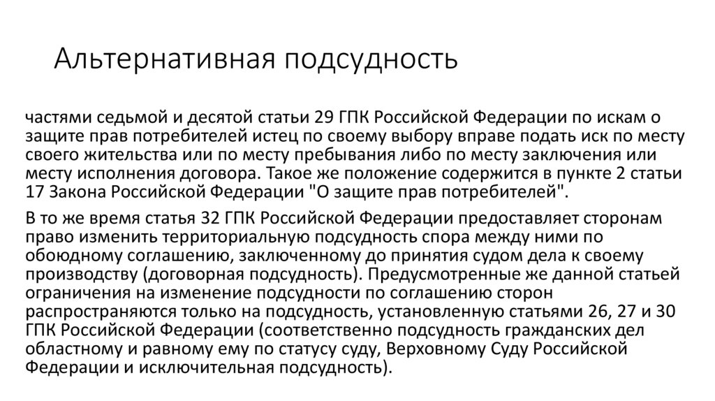 ГПК Российской Федерации (соответственно подсудность гражданских дел