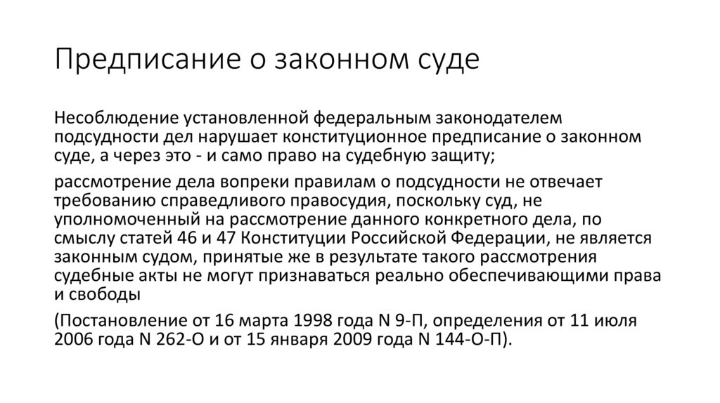 Предписание о законном судеНесоблюдение установленной федеральным законодателем