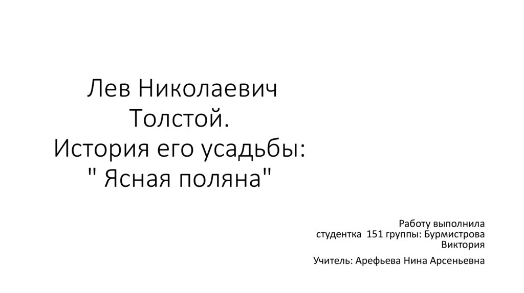 Лев Николаевич Толстой. История его усадьбы " Ясная поляна"