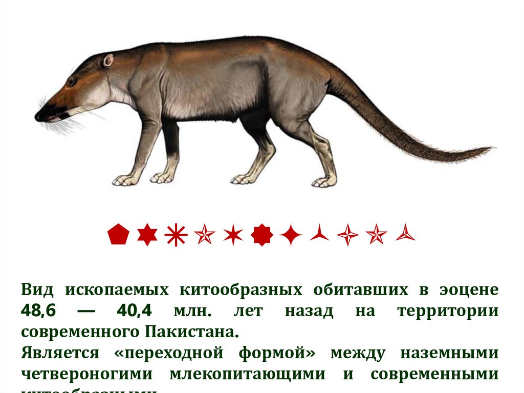 Вид ископаемых китообразных обитавших в эоцене48,6 — 40,4 млн. лет назад на территории