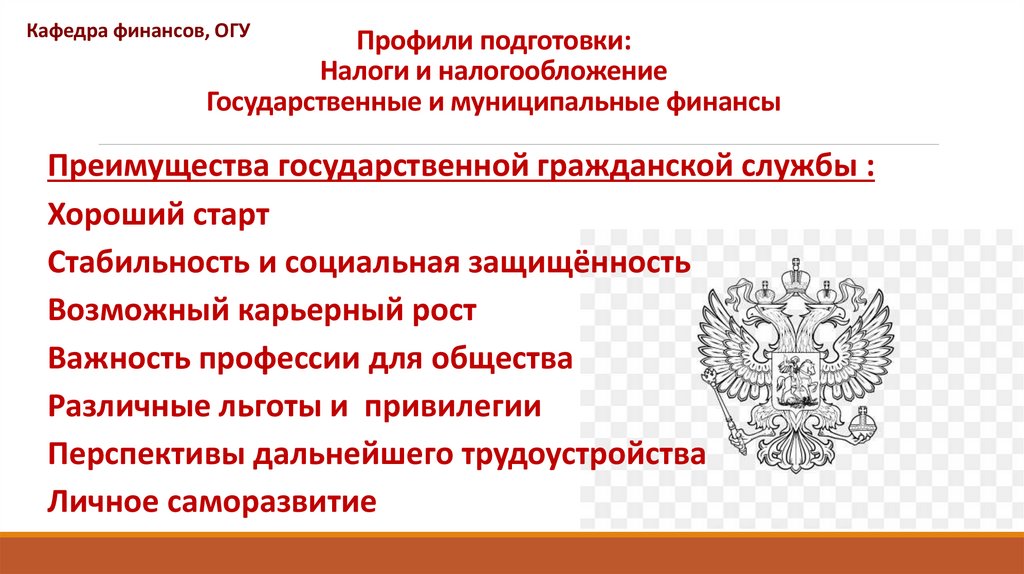 Кафедра финансов, ОГУПреимущества выбора: