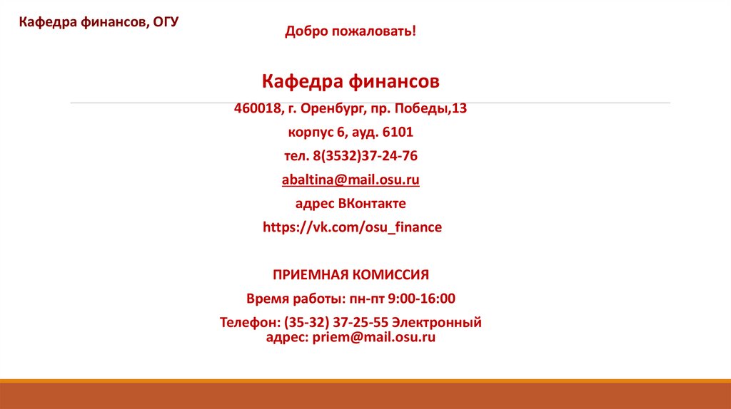 Кафедра финансов, ОГУДобро пожаловать!