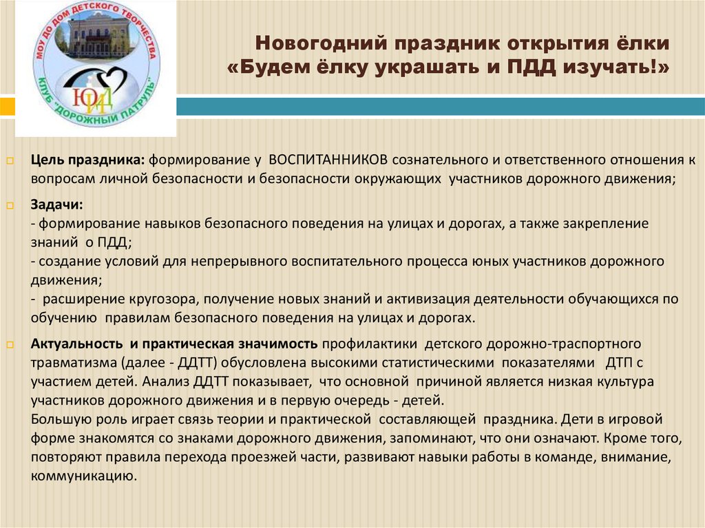 Новогодний праздник открытия ёлки«Будем ёлку украшать и ПДД изучать!»