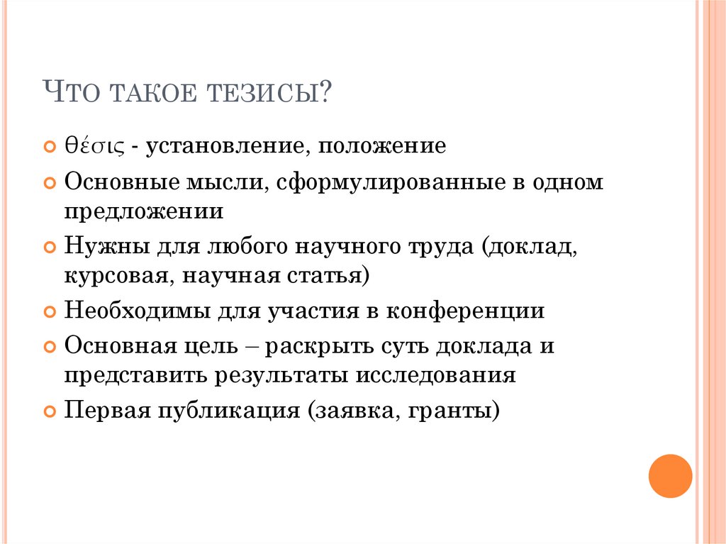 ЧТО ТАКОЕ ТЕЗИСЫ?θέσις - установление, положение