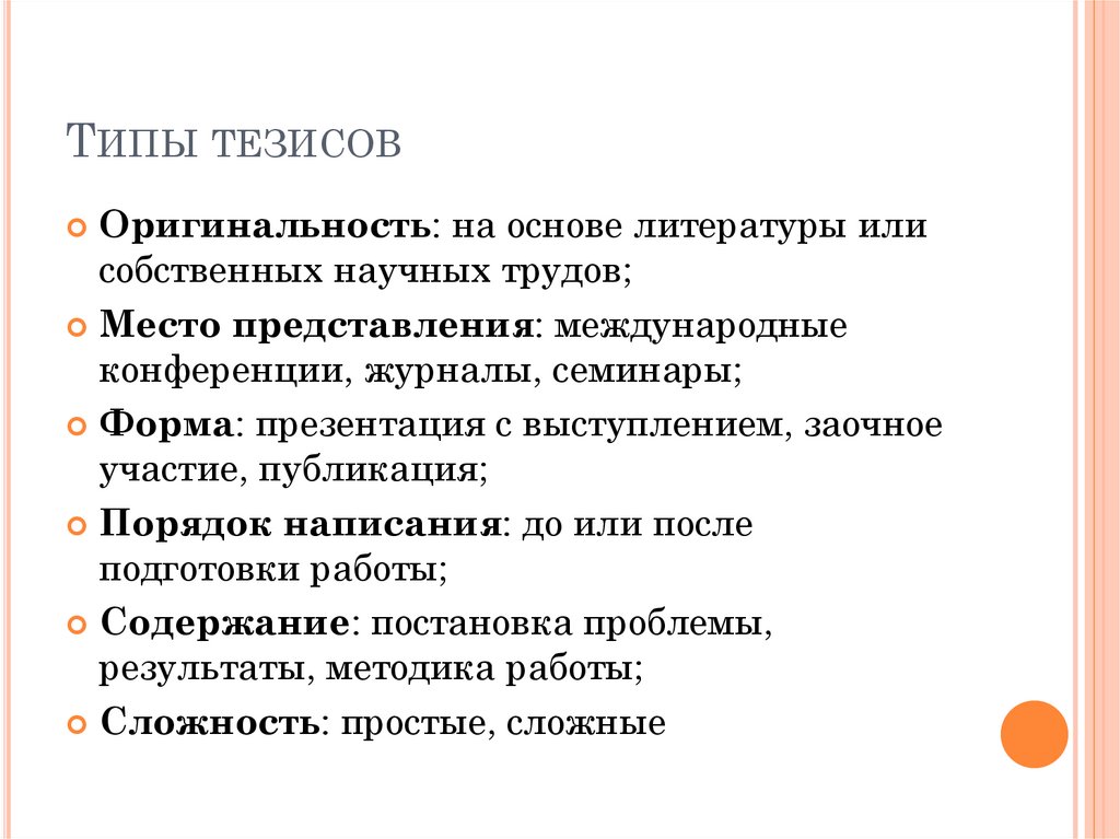 ТИПЫ ТЕЗИСОВОригинальность: на основе литературы или