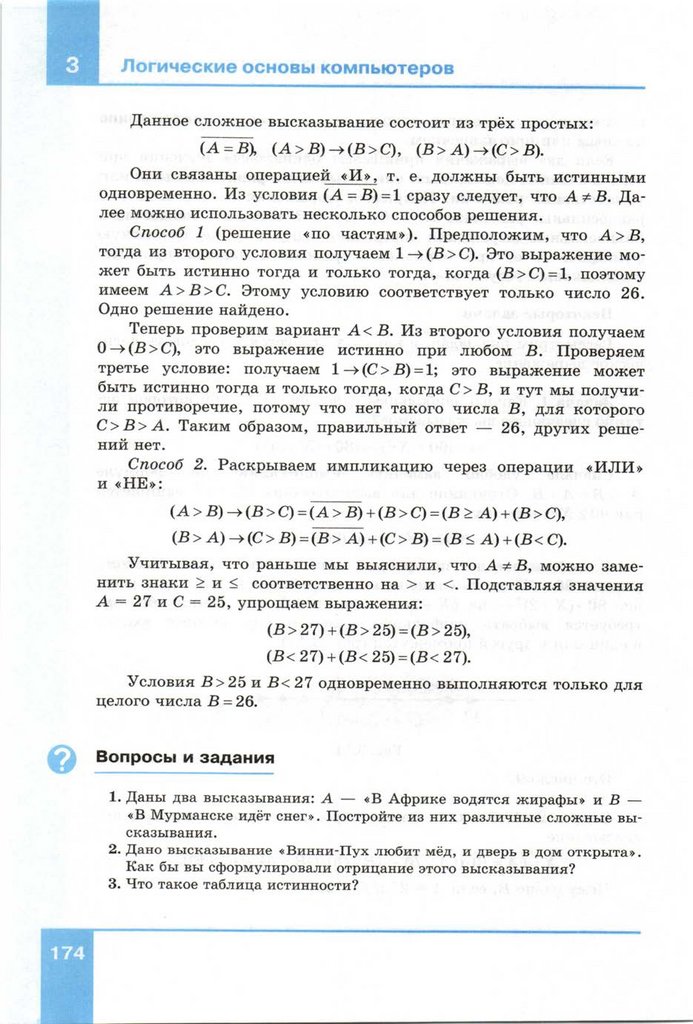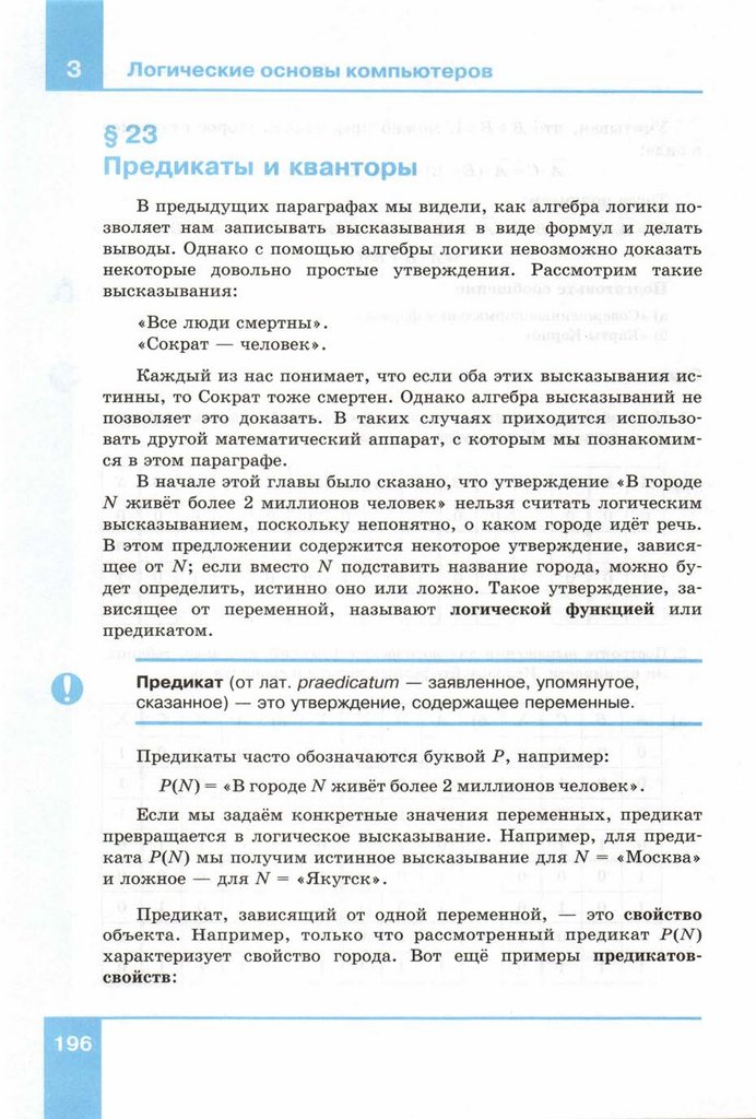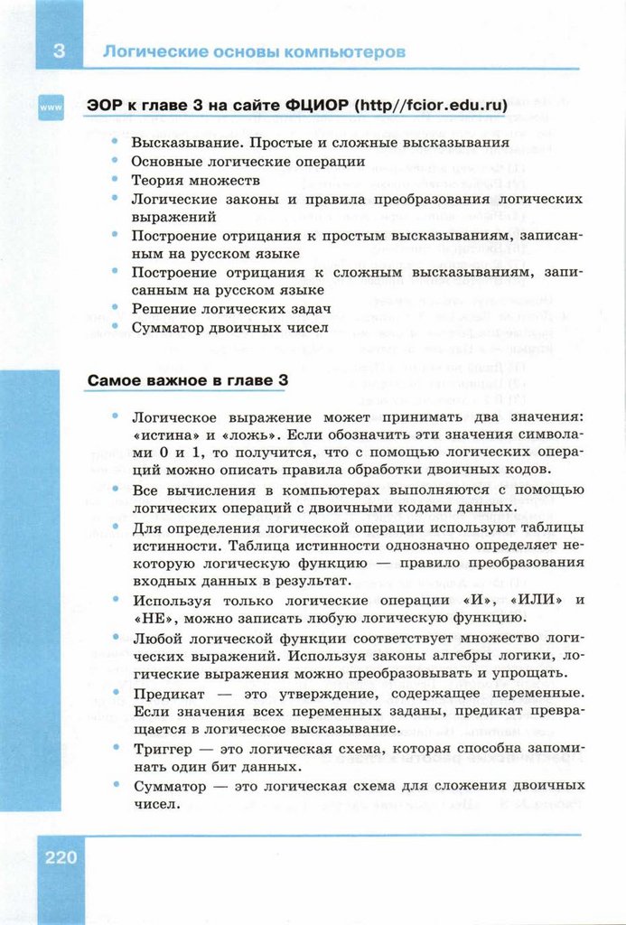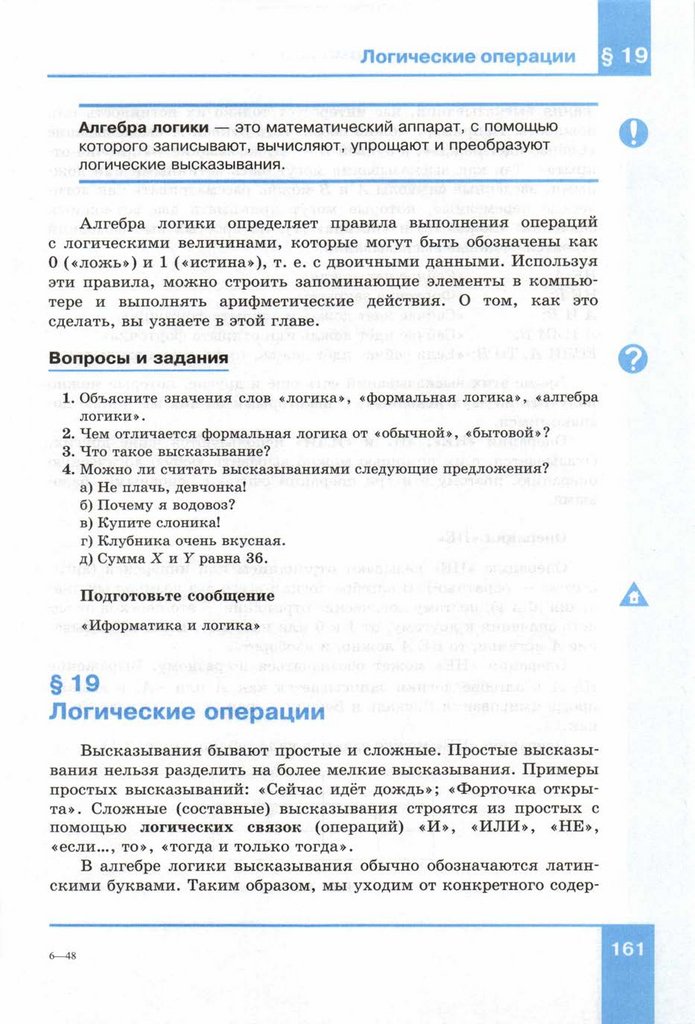 Основа логики. Урок информатики для 10 класса
