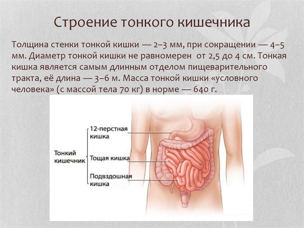тракта, её длина — 3–6 м. Масса тонкой кишки «условного