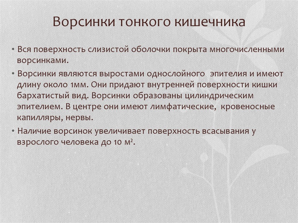 • Ворсинки являются выростами однослойного эпителия и имеют