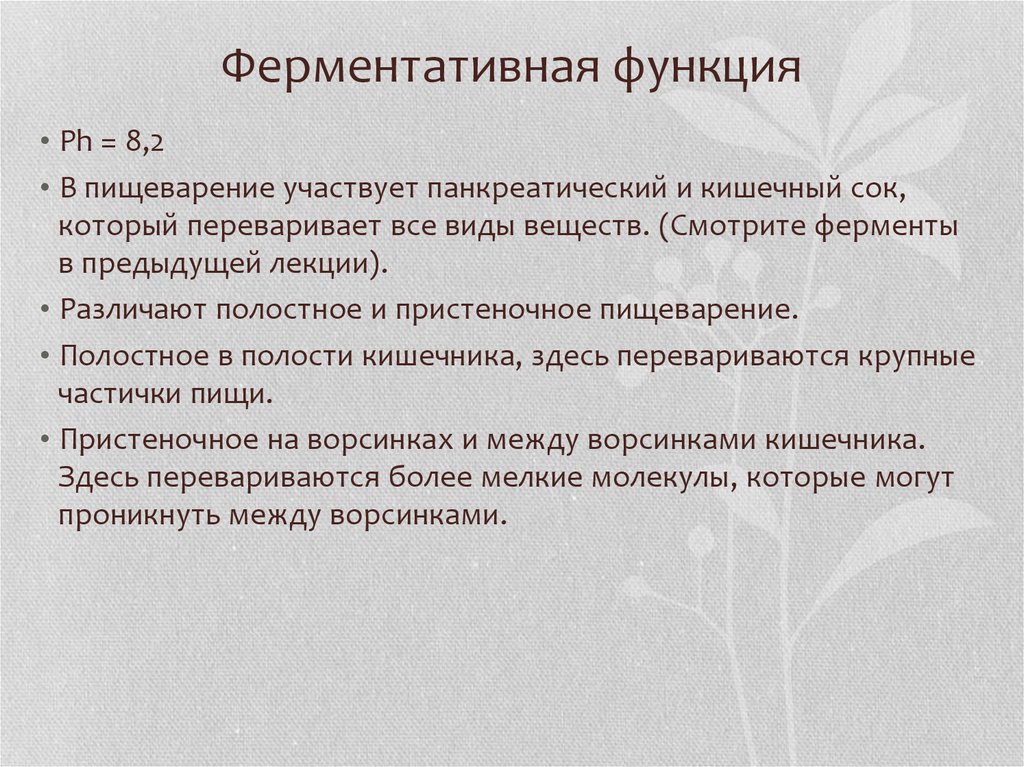 Ферментативная функция• Ph = 8,2