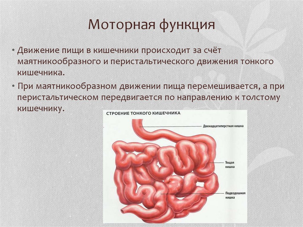 Моторная функция• Движение пищи в кишечники происходит за счёт