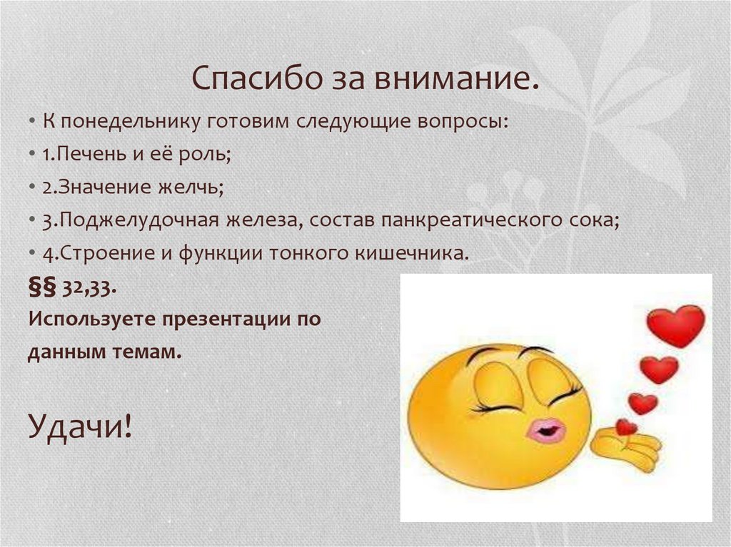 Спасибо за внимание.• К понедельнику готовим следующие вопросы: