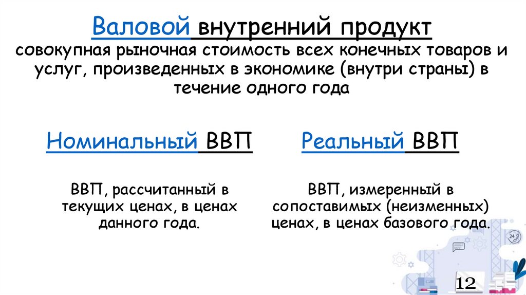 Валовой внутренний продуктсовокупная рыночная стоимость всех конечных товаров и