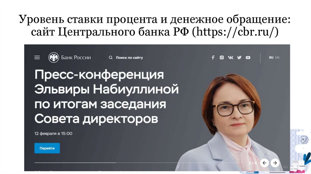 Уровень ставки процента и денежное обращение:сайт Центрального банка РФ (https://cbr.ru/)
