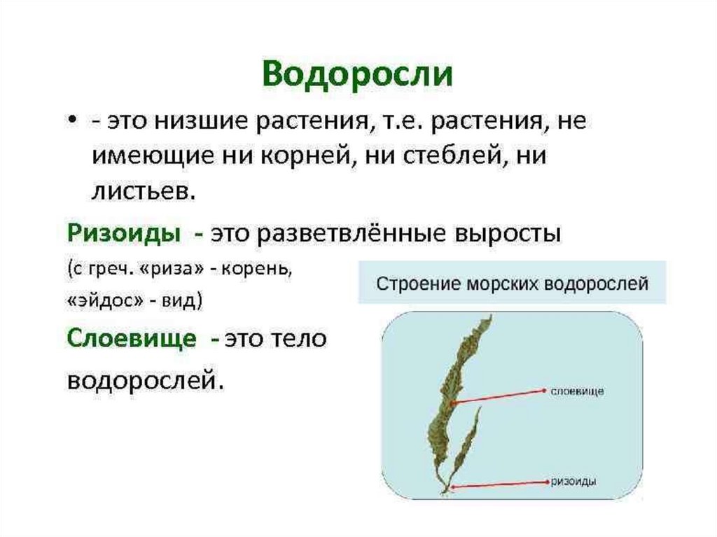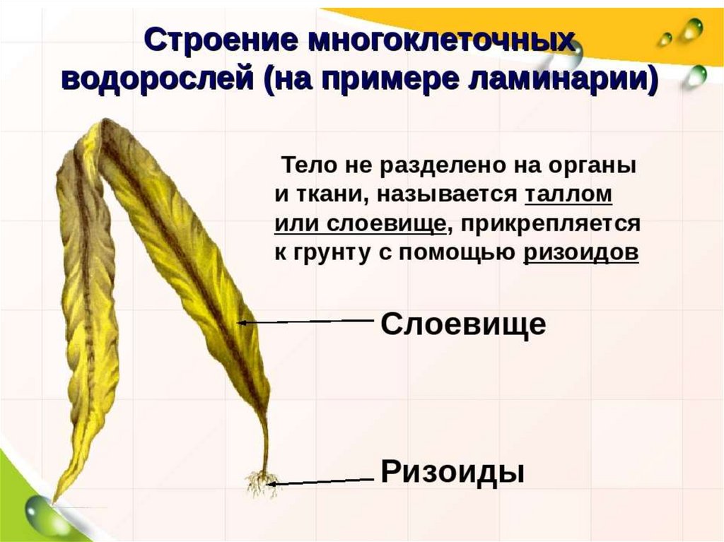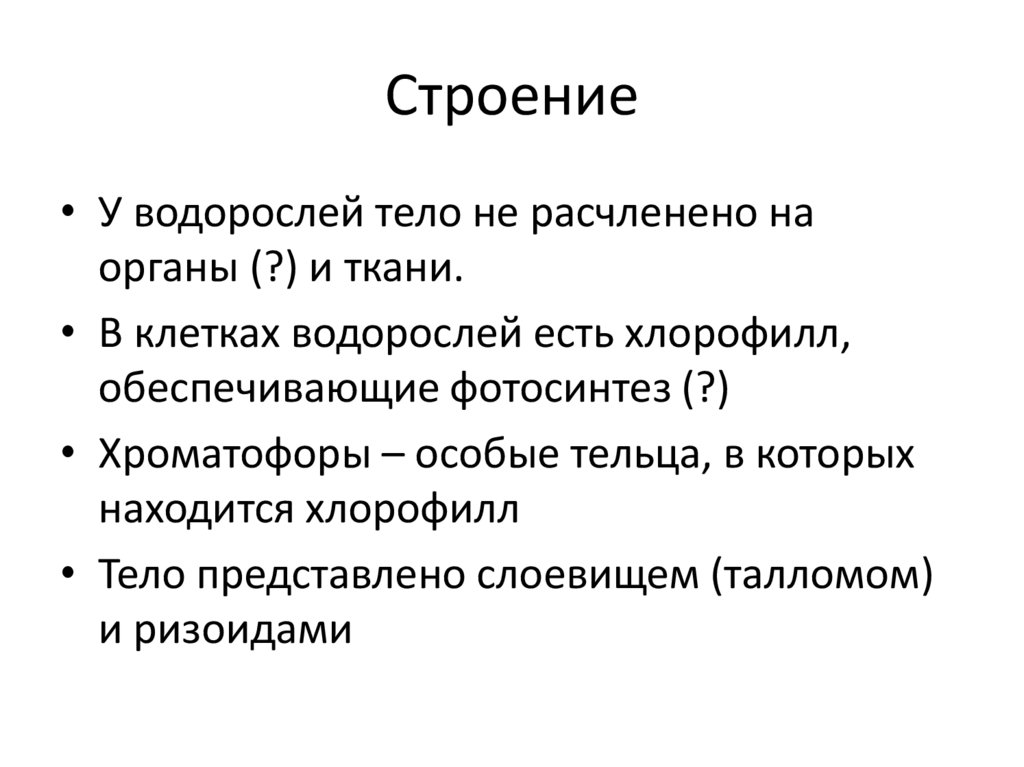 Строение• У водорослей тело не расчленено на