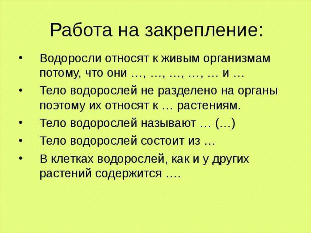• Водоросль питается, дышит, растет,