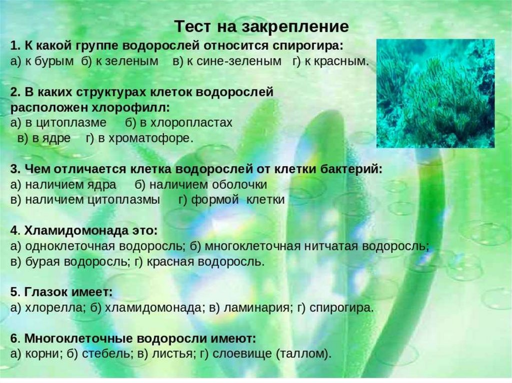 • В клетках водорослей есть хлорофилл,