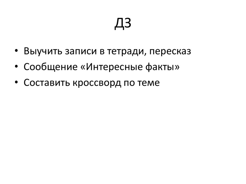 ДЗ• Выучить записи в тетради, пересказ