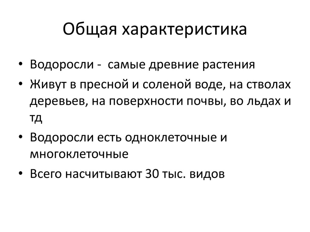 Общая характеристика• Водоросли - самые древние растения