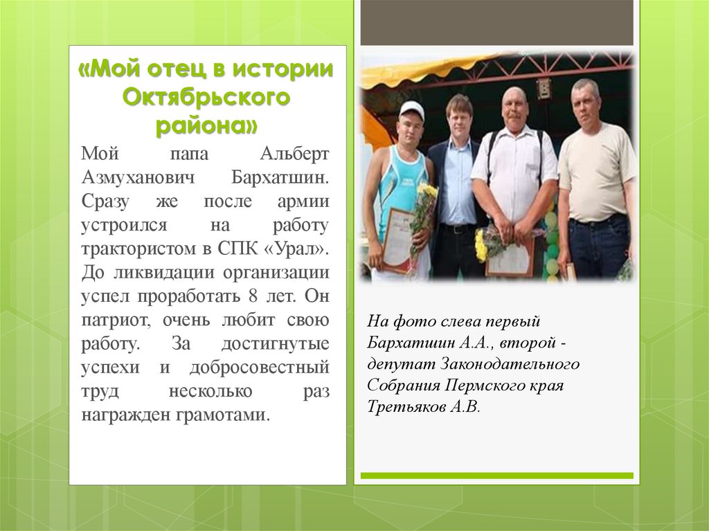 Альберт Азмуханович Бархатшин в истории Октябрьского района. Пермский край