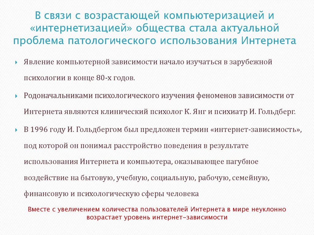 Интернета являются клинический психолог К. Янг и психиатр И. Гольдберг.
