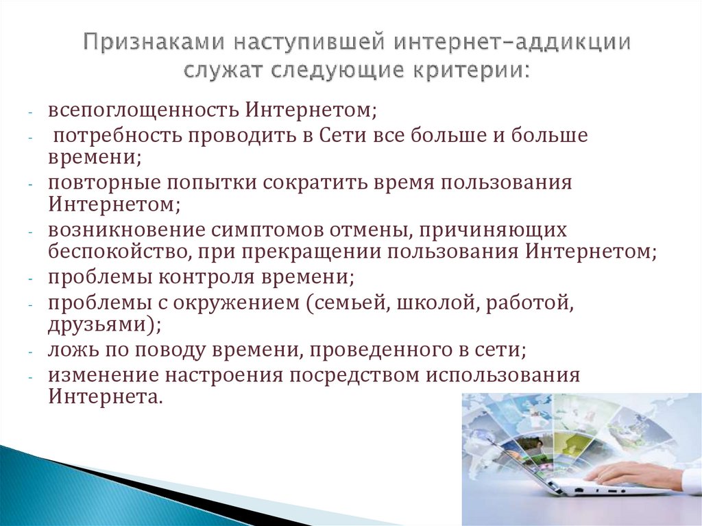 В настоящее время под интернет-зависимостьюпонимается компульсивное желание войти в Интернет,