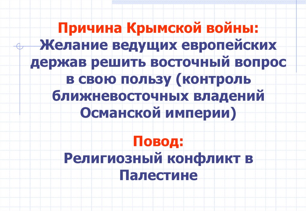 Причина Крымской войны:Желание ведущих европейских