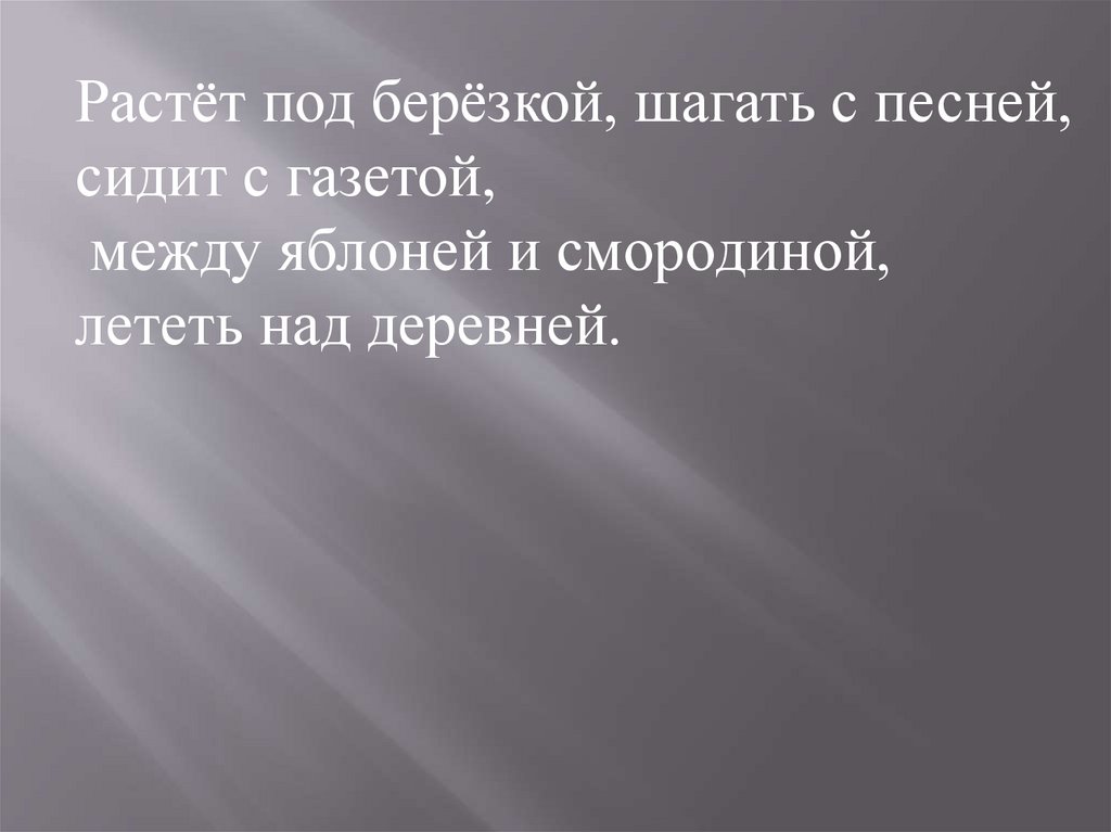 Растёт под берёзкой, шагать с песней,сидит с газетой,