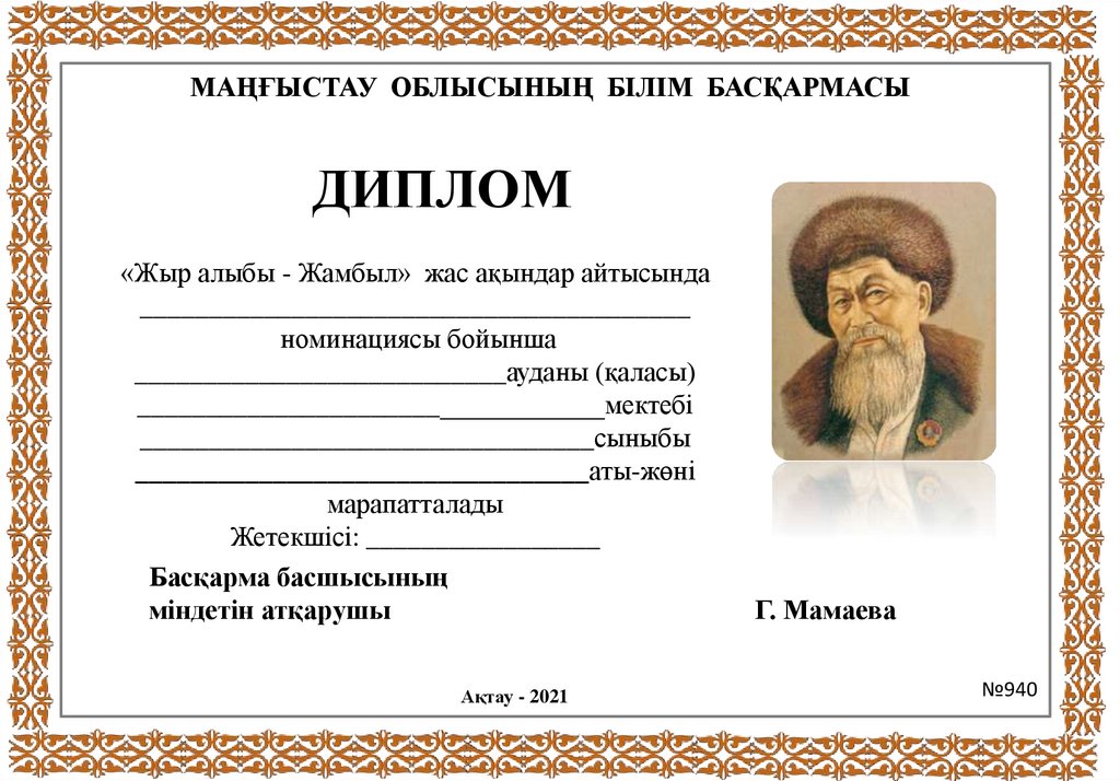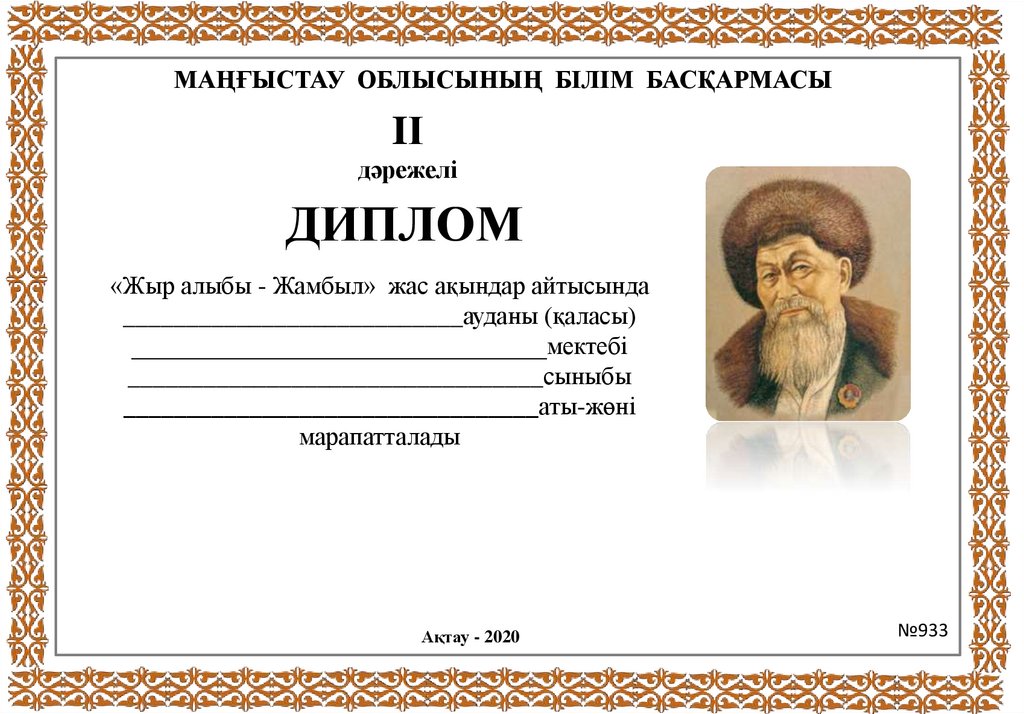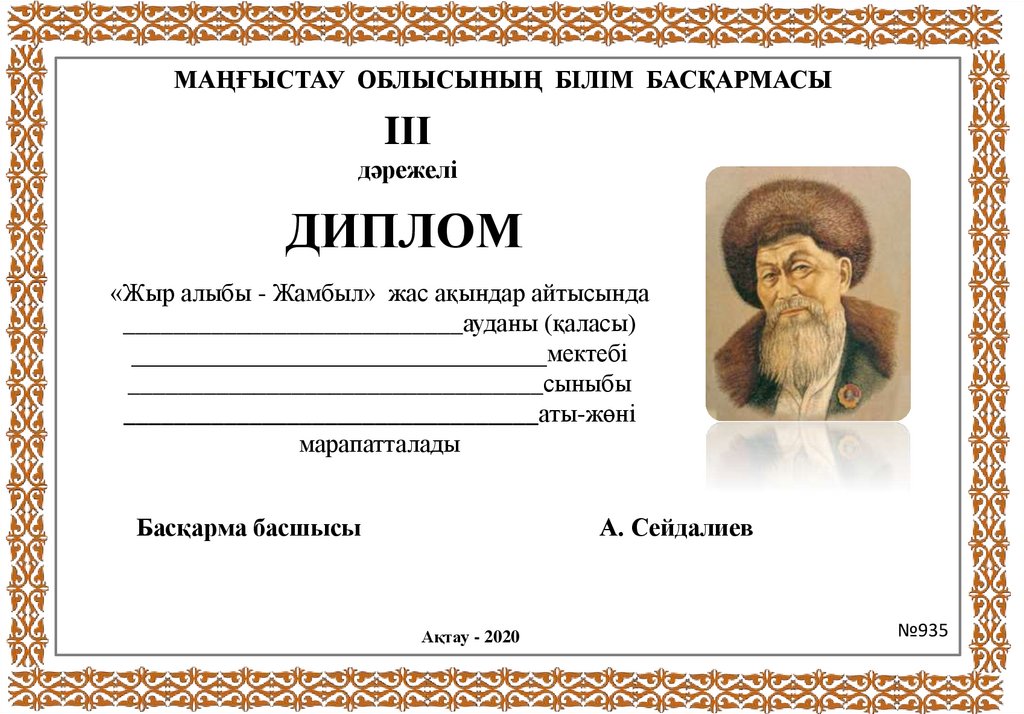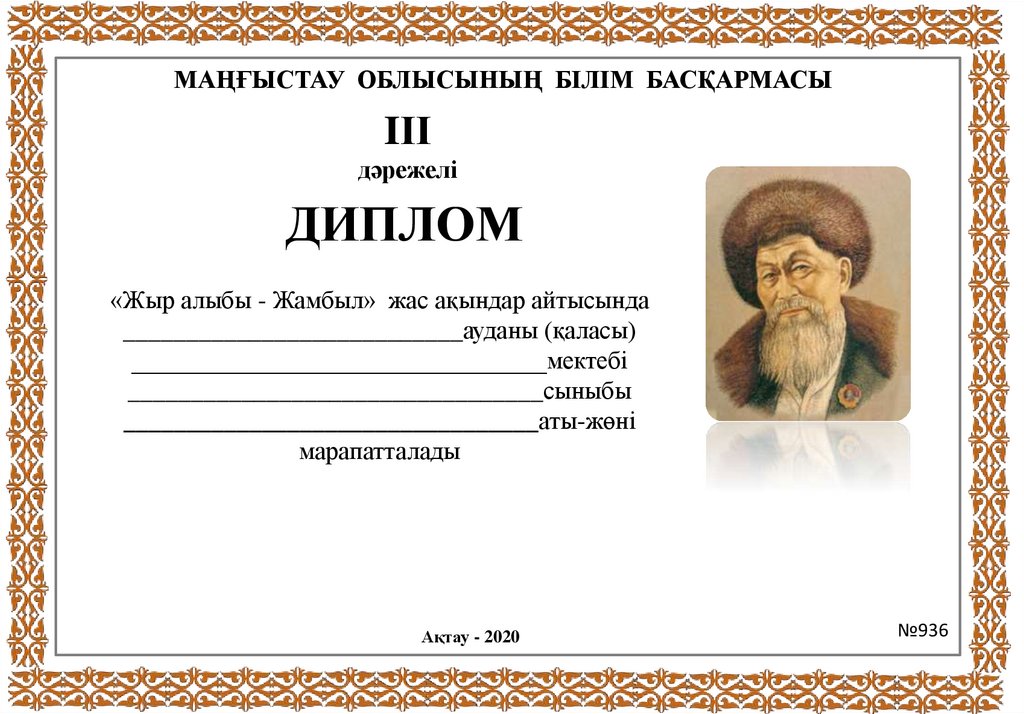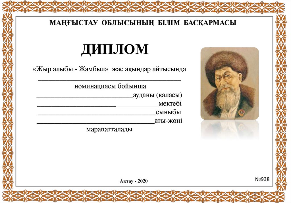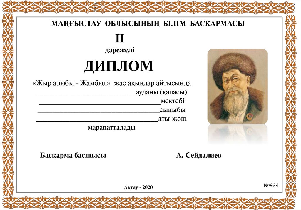 МАҢҒЫСТАУ ОБЛЫСЫНЫҢ БІЛІМ БАСҚАРМАСЫДИПЛОМ