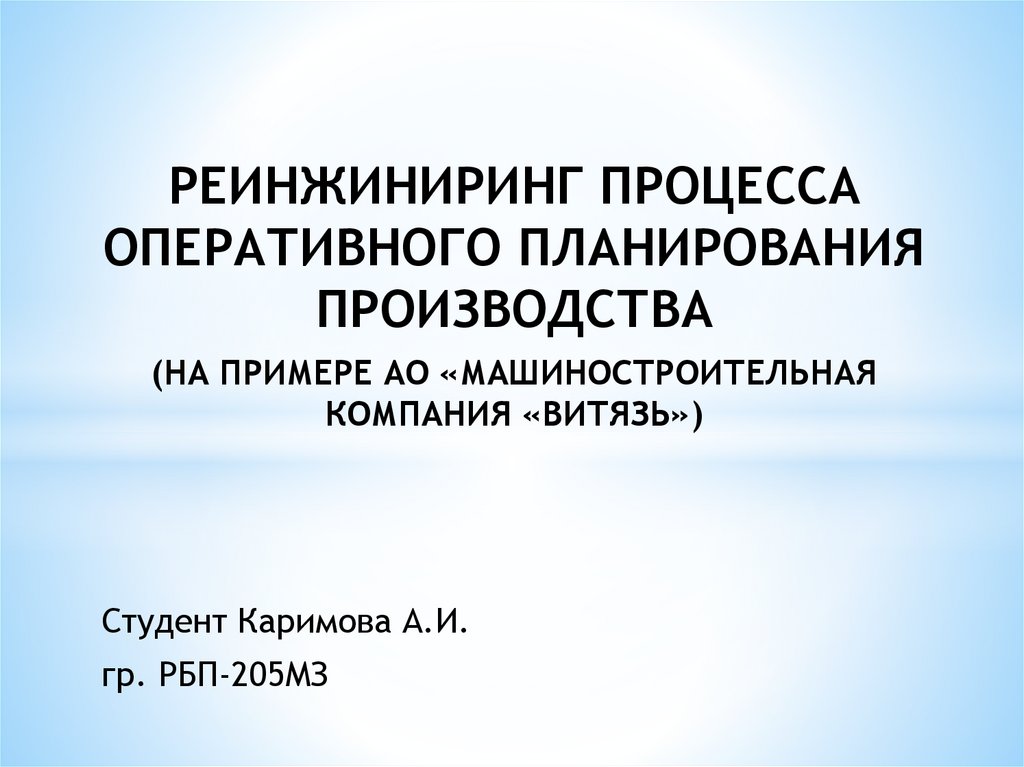 Реинжиниринг процесса оперативного планирования производства АО Машиностроительная компания «Витязь»