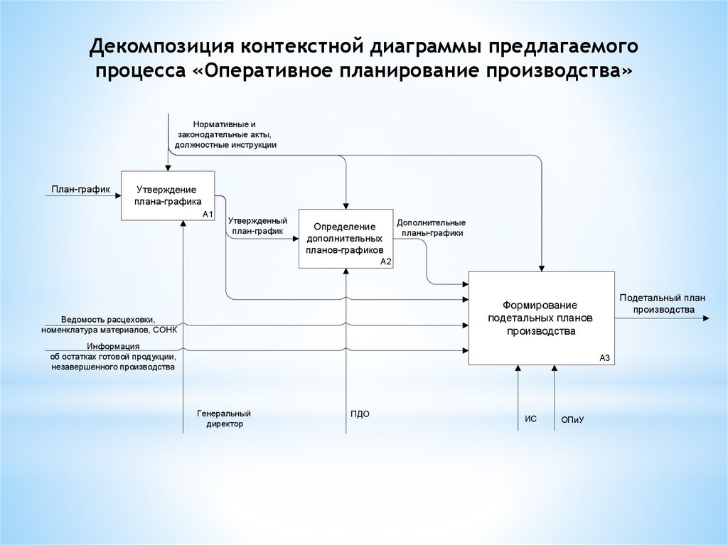 Декомпозиция контекстной диаграммы процесса «Оперативноепланирование производства»