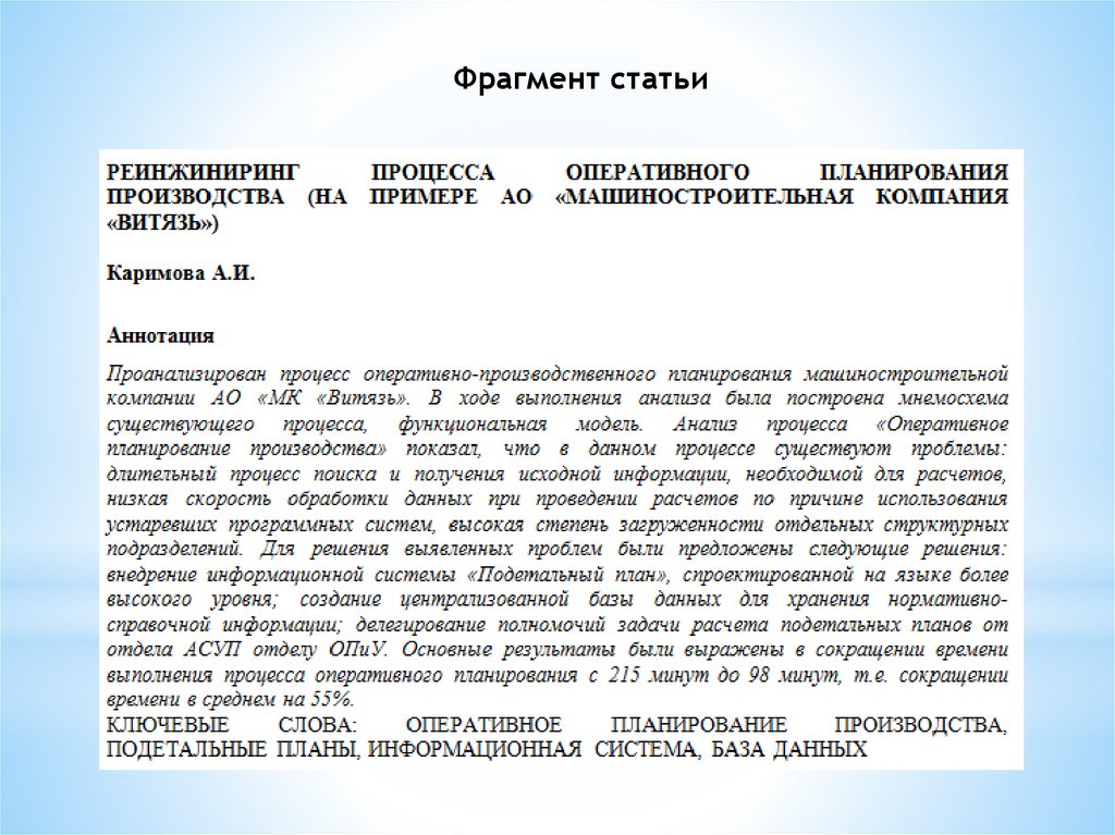 РЕИНЖИНИРИНГ ПРОЦЕССАОПЕРАТИВНОГО ПЛАНИРОВАНИЯ