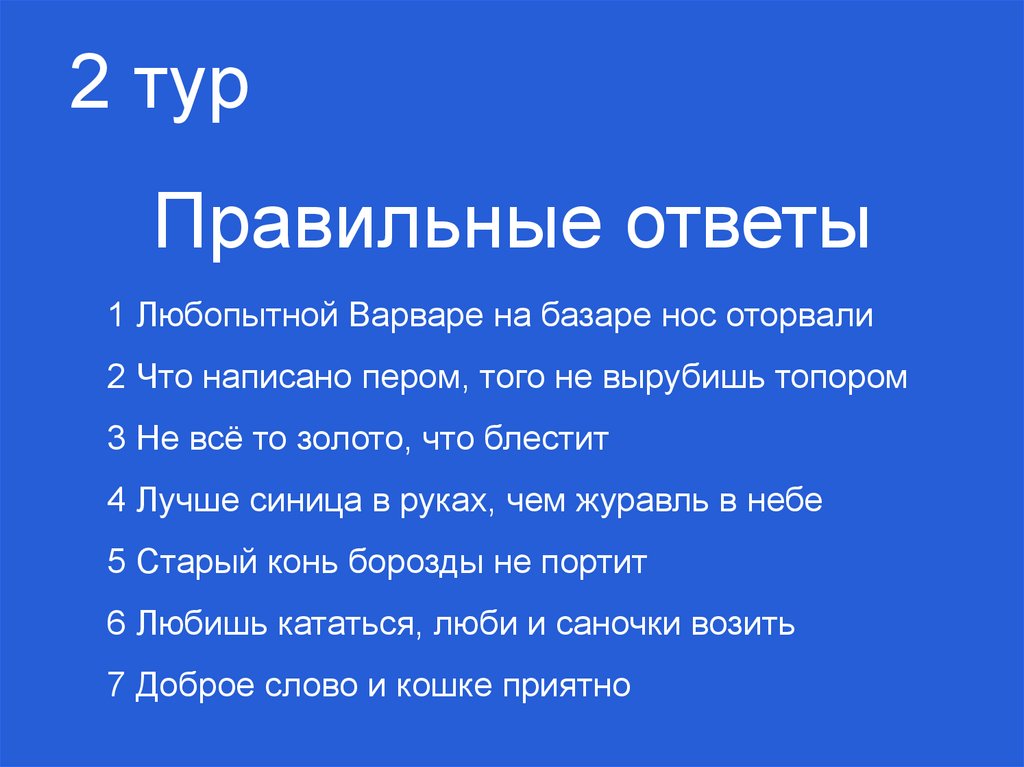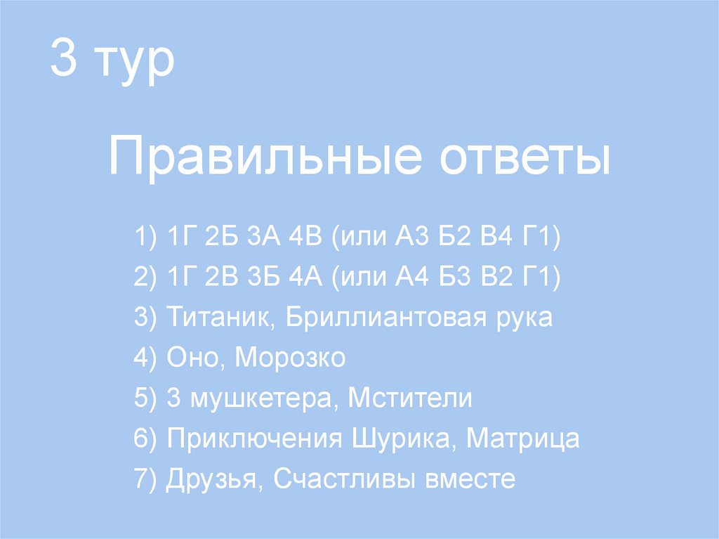 2 турПравильные ответы