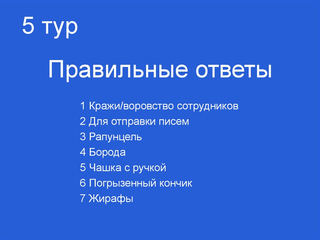 5 турПравильные ответы