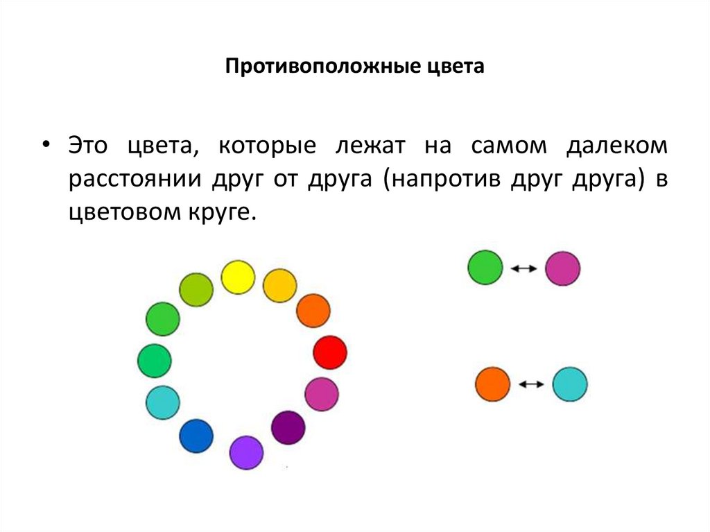 Противоположные цвета• Это цвета, которые лежат на самом далеком