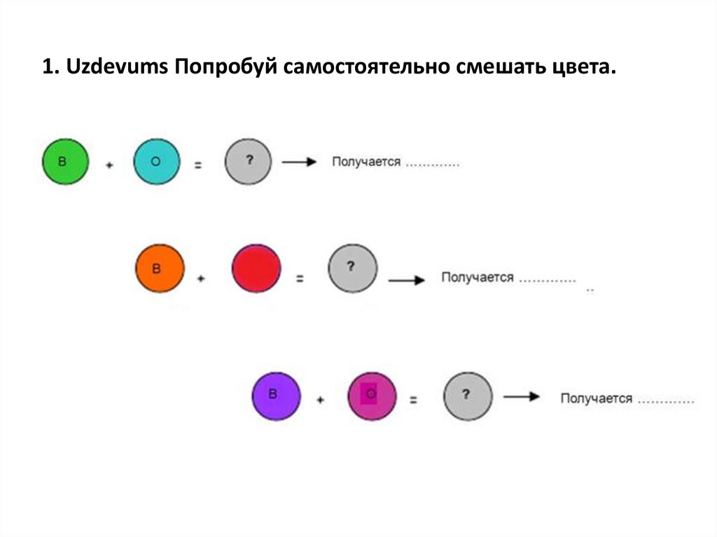 1. Uzdevums Попробуй самостоятельно смешать цвета.• с