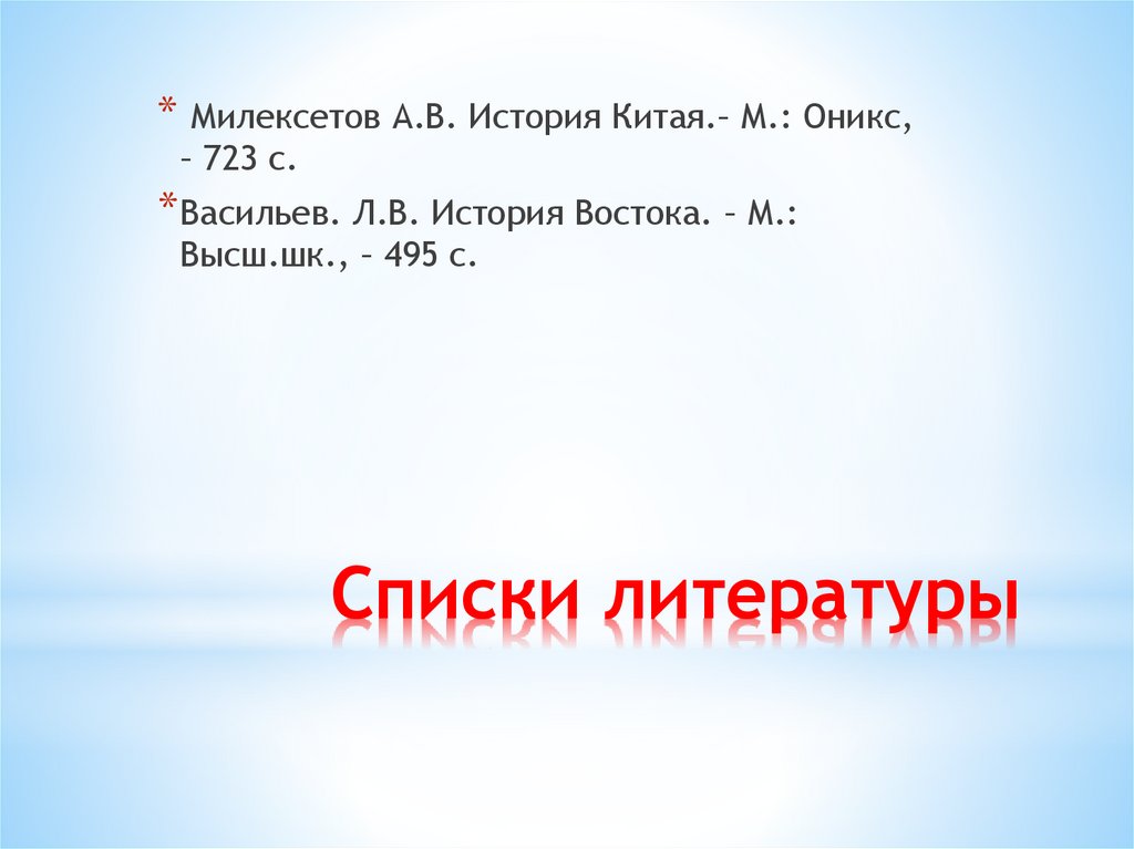 * Милексетов А.В. История Китая.– М.: Оникс,– 723 с.